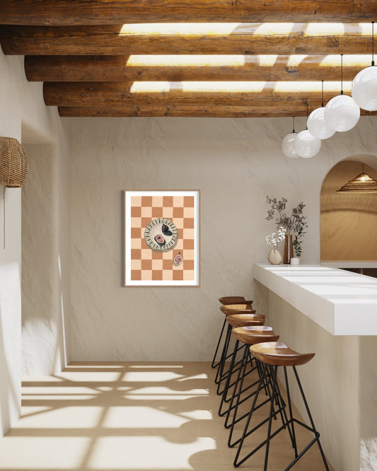 'Parisian Figs On Orange Check' Art Print